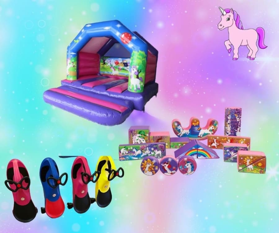 This Unicorn Bouncy Castle & Soft play Package is suitable for all indoor venues. This package is suitable for all your Unicorn themed parties & Events