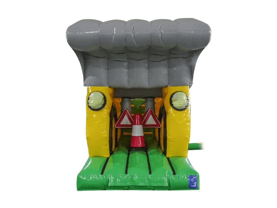 The Digger Obstacle Course is mainly yellow in colour just like a real digger and cleverly manufactured with its 3d design. Once you enter the Obstacle Course you manoeuvre a traffic cone bish bash pole, duck under or weave your way through the traffic sign obstacles hanging from the roof, before climbing to the top of the 8ft platform slide