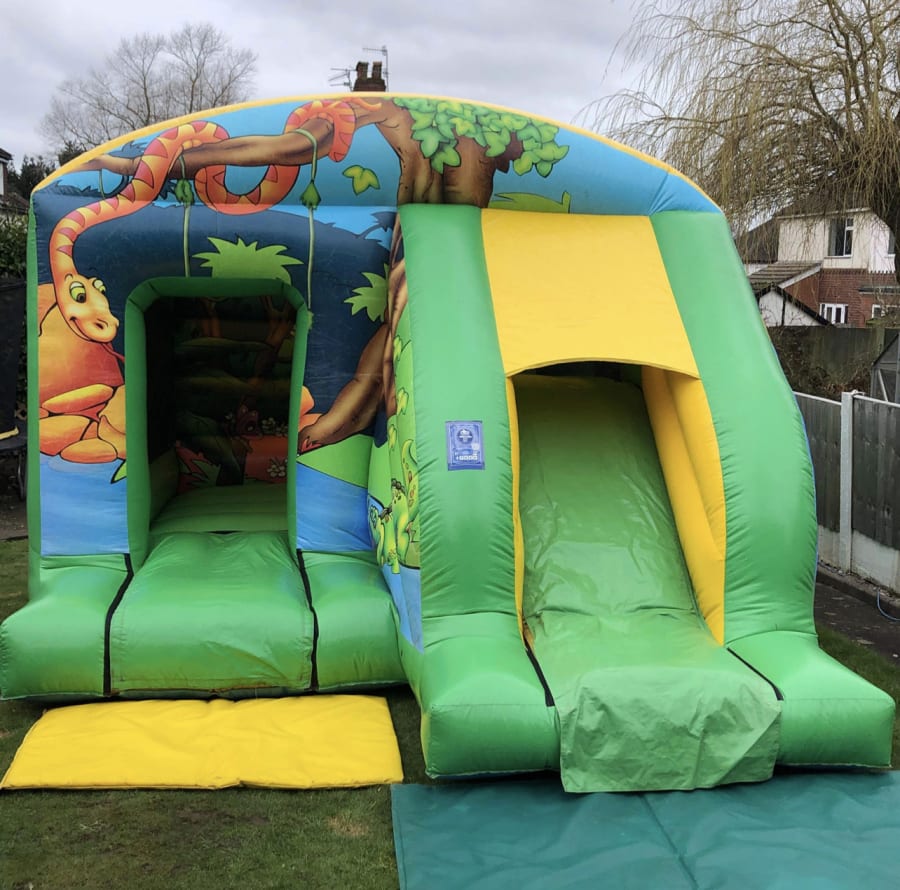 Our Jungle themed bouncy castle with slide is a fantastic addition to our fleet and will make your guests roar with excitement.