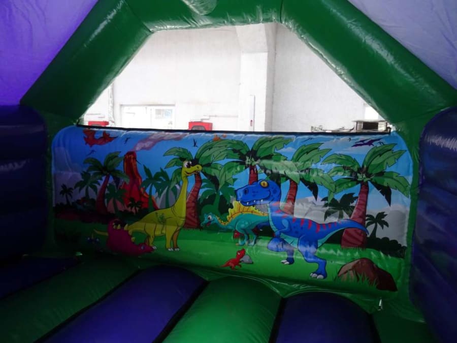 This is a ultimate dinosaur theme, with rich artwork and great colours throughout the inflatable. It's brand new and has a lovely gloss finish enhacing the already magificant colours.