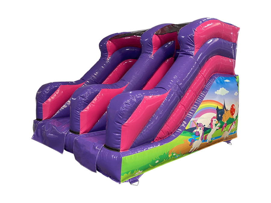 Bring a burst of colour and excitement to your next celebration with our 5ft Platform Unicorn Slide! This enchanting unicorn bouncy slide is a favourite for birthday parties, family events, and community gatherings across Shrewsbury, Telford, and Oswestry. Featuring dazzling rainbows, majestic castles, and, of course, adorable unicorns, this inflatable is sure to delight every young party-goer and provide hours of fun.