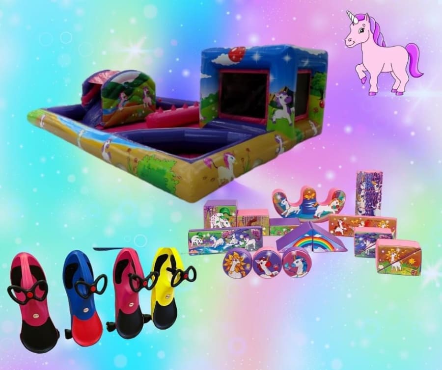 This Unicorn 4 in 1 Soft Play Package is suitable for all indoor venues. This package is suitable for all your Unicorn themed parties & Events