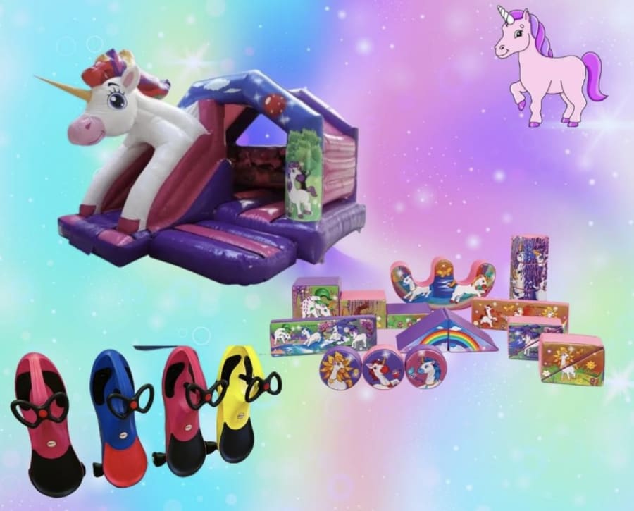 This Unicorn Bouncy Castle With Slide & Soft play Package is suitable for all indoor venues. This package is suitable for all your Unicorn themed parties & Events